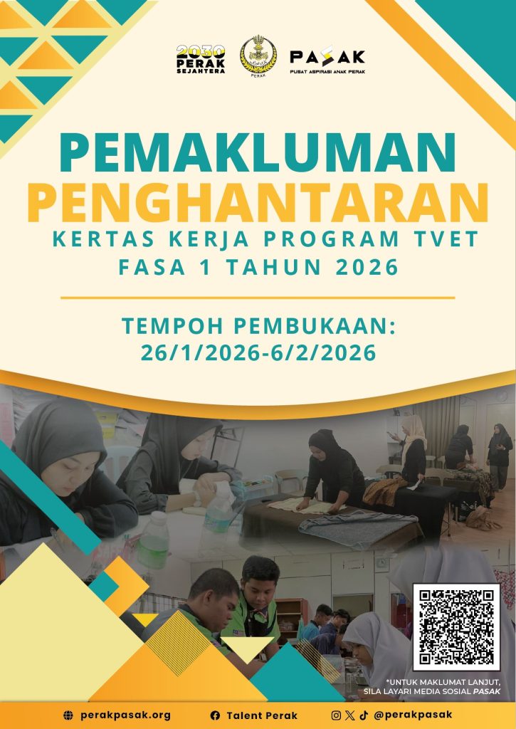 Dimaklumkan bahawa semua penyedia latihan yang berminat dan berkelayakan dijemput untuk menghantar kertas kerja bagi Program TVET Fasa 1 Tahun 2026. Tempoh penghantaran: 26 Januari – 6 Februari 2026 Semua RFP perlu dihantar mengikut format dan garis panduan yang ditetapkan. Untuk sebarang pertanyaan atau maklumat lanjut, sila hubungi Cik Asyikin atau Encik Amirul Zahir di […]