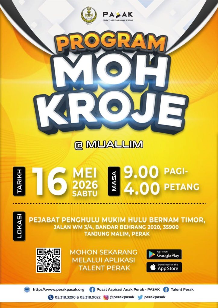 Muallim, Perak – Pusat Aspirasi Anak Perak (PASAK) meneruskan inisiatif pembangunan kerjaya melalui Program Moh Kroje 2026 dengan penganjuran Walk-In Interview / Temuduga Terbuka di daerah Muallim. Program ini memberi peluang kepada pencari kerja untuk bertemu majikan secara terus, meneroka pelbagai jawatan kosong, serta meningkatkan kebolehpasaran dalam pasaran kerja semasa. Maklumat Temuduga Terbuka Moh Kroje […]