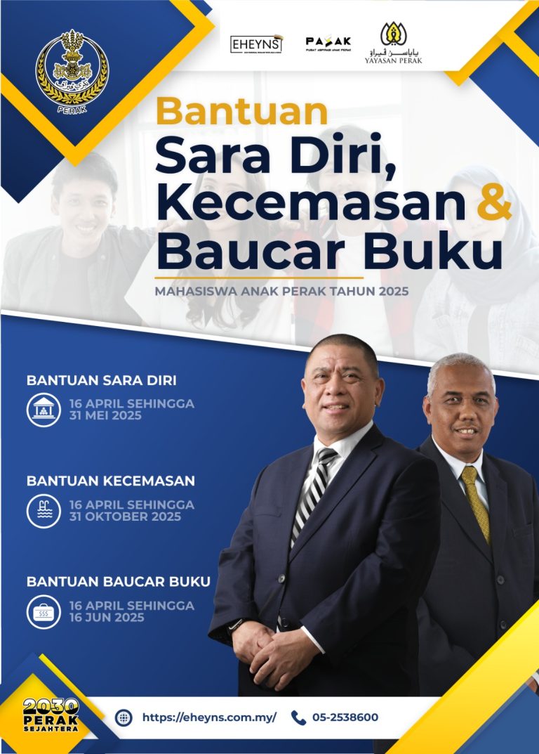 Baucar buku bernilai RM150 menanti anda! Jangan lepaskan peluang mohon Bantuan Baucar Buku Mahasiswa Perak 2025 sekarang! – Permohonan dibuka: 16 APRIL โ 16 JUN 2025 – Mohon sekarang di https://eheyns.com.my atau scan je QR code kat poster tu – Sebarang pertanyaan? Call 05-318 3290 ! #BaucarBuku2025 #MahasiswaPerak #PASAK #YayasanPerak