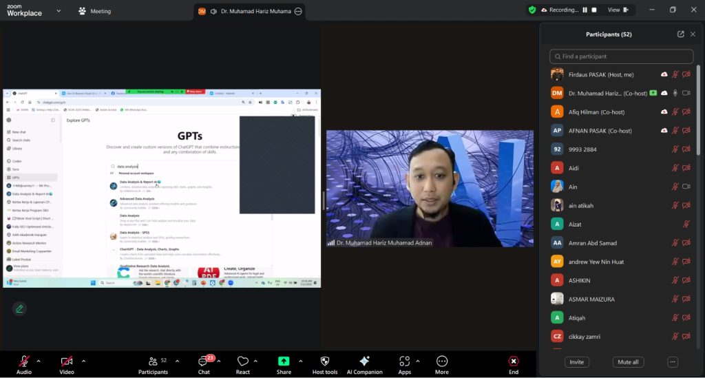 𝐊𝐋𝐈𝐍𝐈𝐊 𝐊𝐄𝐑𝐉𝐀𝐘𝐀 : 𝐊𝐔𝐑𝐒𝐔𝐒 𝐆𝐄𝐍𝐄𝐑𝐀𝐓𝐈𝐕𝐄 𝐀𝐈 𝐌𝐀𝐄𝐒𝐓𝐑𝐎. Tarikh: 25 Januari 2025Masa: 9:00 pagi – 4:00 petang PASAK telah menganjurkan satu kursus intensif bertajuk “Pembangunan Chatbot Menggunakan Pelbagai Alat AI” yang berlangsung dari 9:00 pagi hingga 4:00 petang. Program ini dihadiri oleh 60 orang peserta yang terdiri daripada profesional, pelajar, dan penggiat teknologi yang berminat untuk mendalami pengetahuan […]