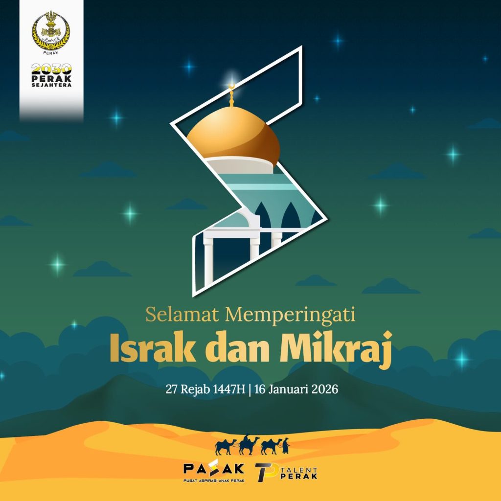Malam Israk Mikraj bukan sekadar peristiwa sejarah, malah satu kembara rohani yang membuktikan kebesaran Allah SWT dan kasih sayang-Nya kepada Rasulullah SAW. Mari jadikan kembara agung ini inspirasi untuk melonjakkan potensi diri dan kualiti ibadah. Salam Israk Mikraj dari kami di PASAK! #IsrakMikraj #PASAK #Perak #PerakSejahtera2030