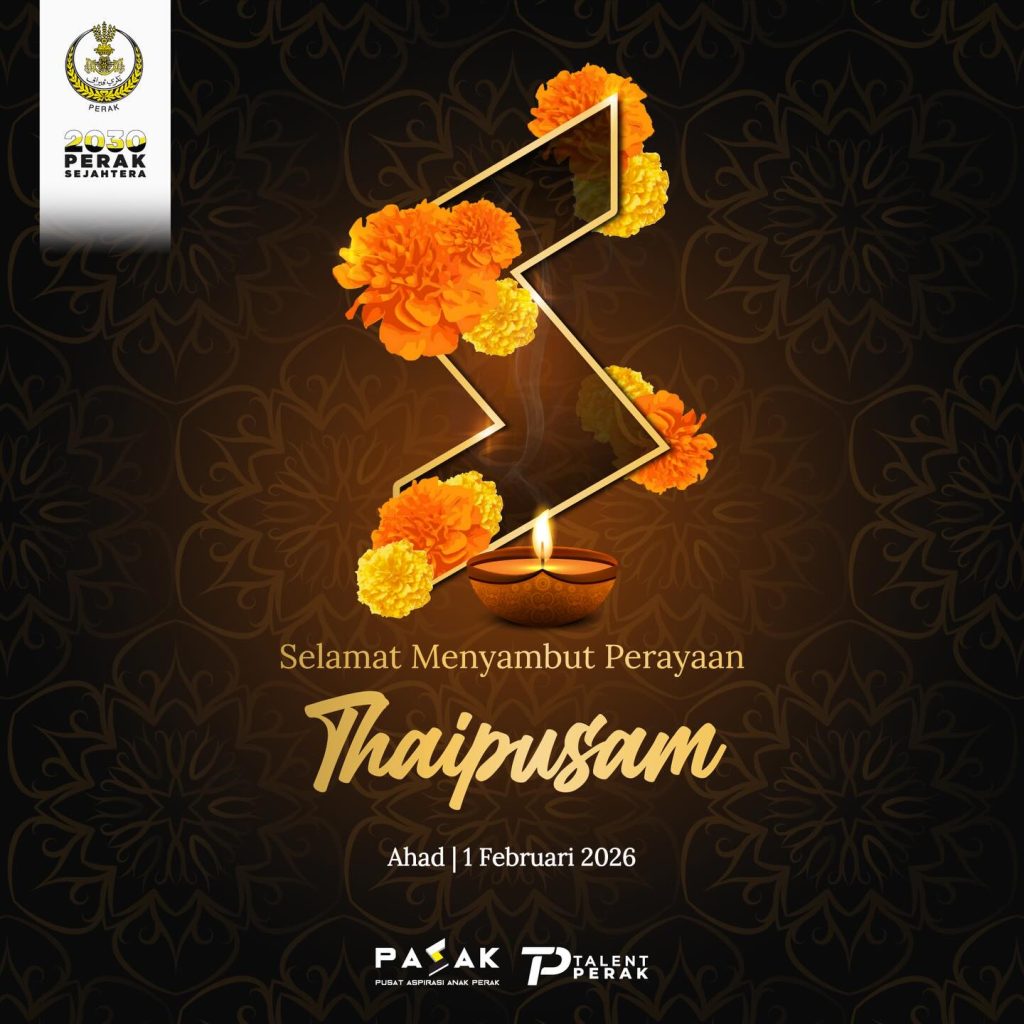 Semoga hari yang baik ini membawa kebahagiaan, kedamaian, dan kemakmuran kepada kita semua. Bersatu dalam kepelbagaian, harmoni dalam kehidupan. Mari kita hargai keindahan budaya dan tradisi yang menyatukan kita sebagai rakyat Malaysia. ๐๐๐ฅ๐๐ฆ๐๐ญ ๐๐๐ซ๐ข ๐๐ก๐๐ข๐ฉ๐ฎ๐ฌ๐๐ฆ ๐๐๐ ๐ข ๐ญ๐๐ก๐ฎ๐ง ๐๐๐๐ ๐๐๐ซ๐ข ๐ค๐๐ฆ๐ข ๐๐ข ๐๐๐๐๐ #PasakPerakย #PerakSejahtera2030ย #thaipusam2026