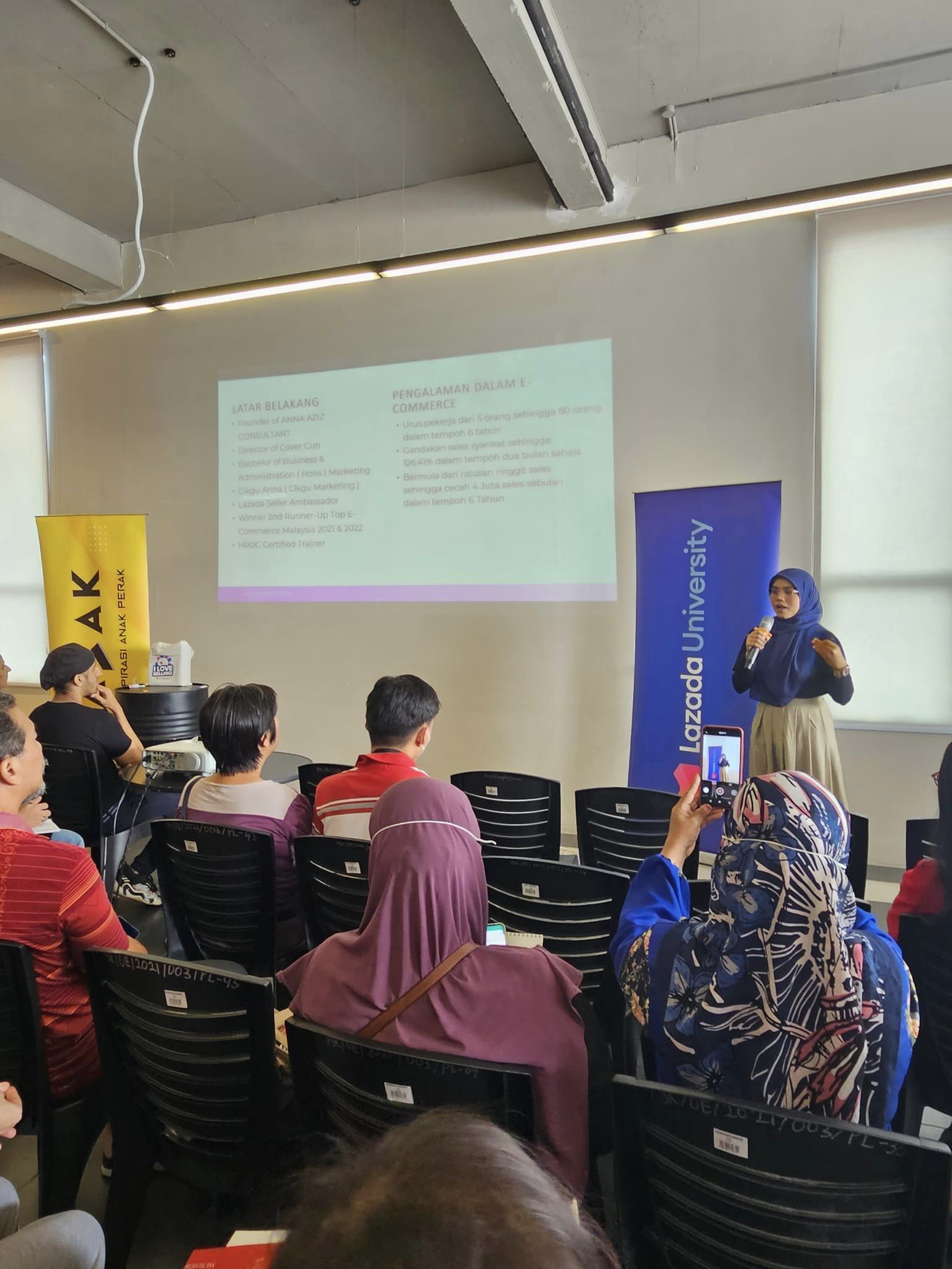 Program Sesi Tarik bersama Lazada ini telah dijalankan secara bersemuka bermula 3 petang sehingga 6 petang dan telah disampaikan oleh pakar E-Commerce Lazada iaitu Cik Anna, Encik Yu Heng, Encik Mandip dan Encik Maddox. Kursus ini telah mendapat penyertaan sebanyak 65 orang yang terdiri daripada usahawan yang menggunakan platform Lazada untuk berniaga. Peserta didedahkan dengan tips untuk kembangkan perniagaan mereka di Lazada serta cara untuk menambahkan cabang perniagaan mereka.