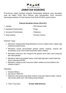 • Taraf Jawatan: Kontrak (3 tahun)