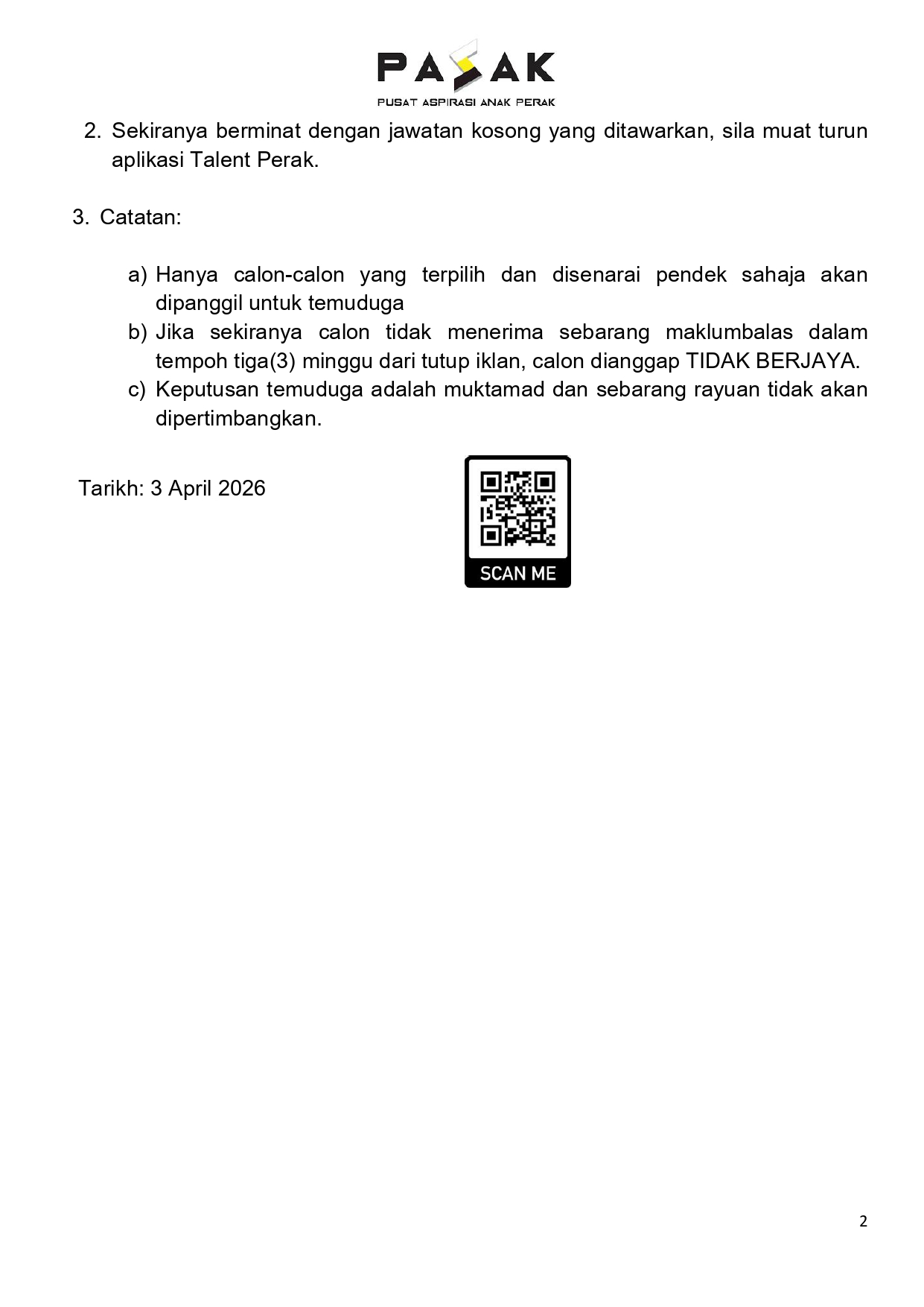 • Hanya calon yang disenarai pendek akan dipanggil temuduga