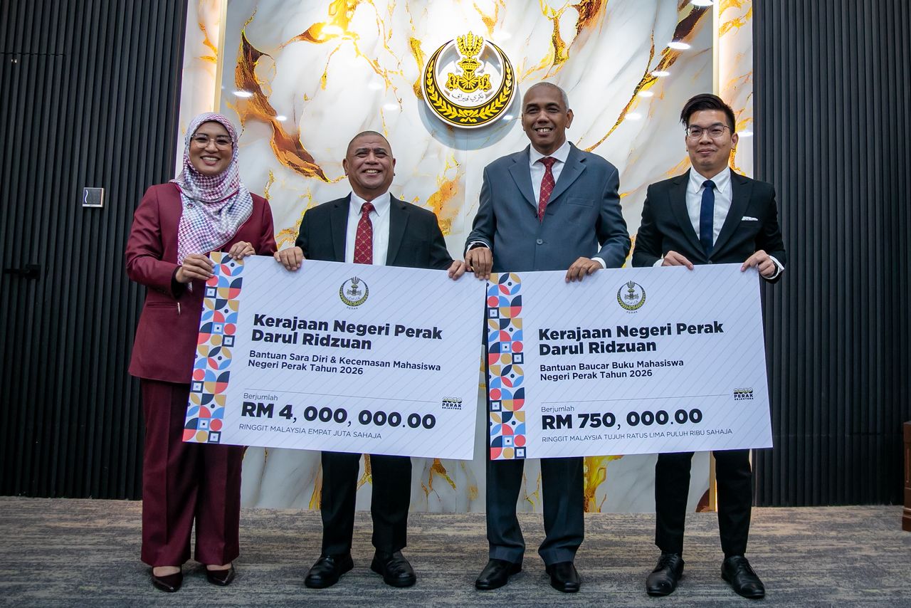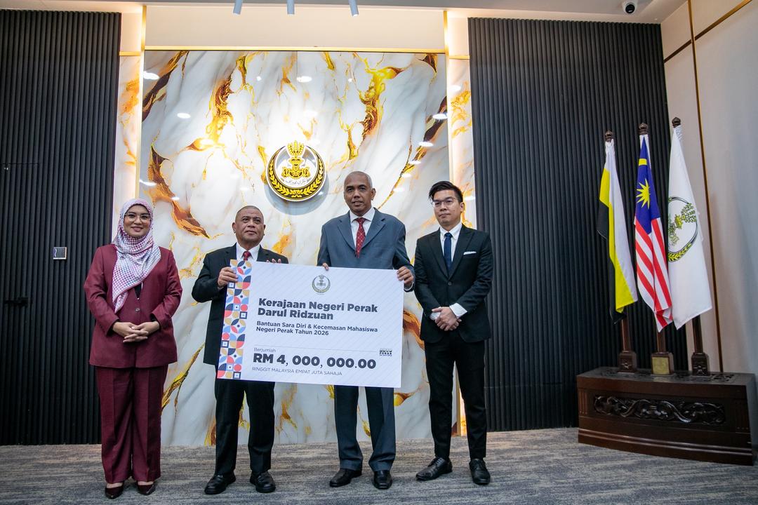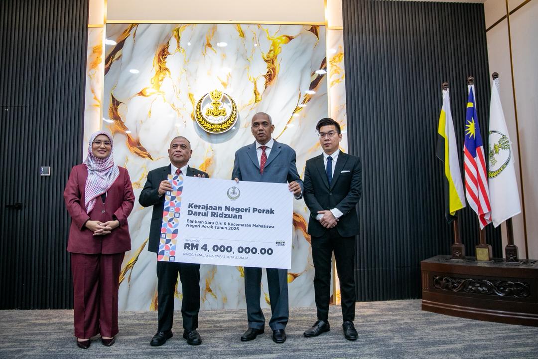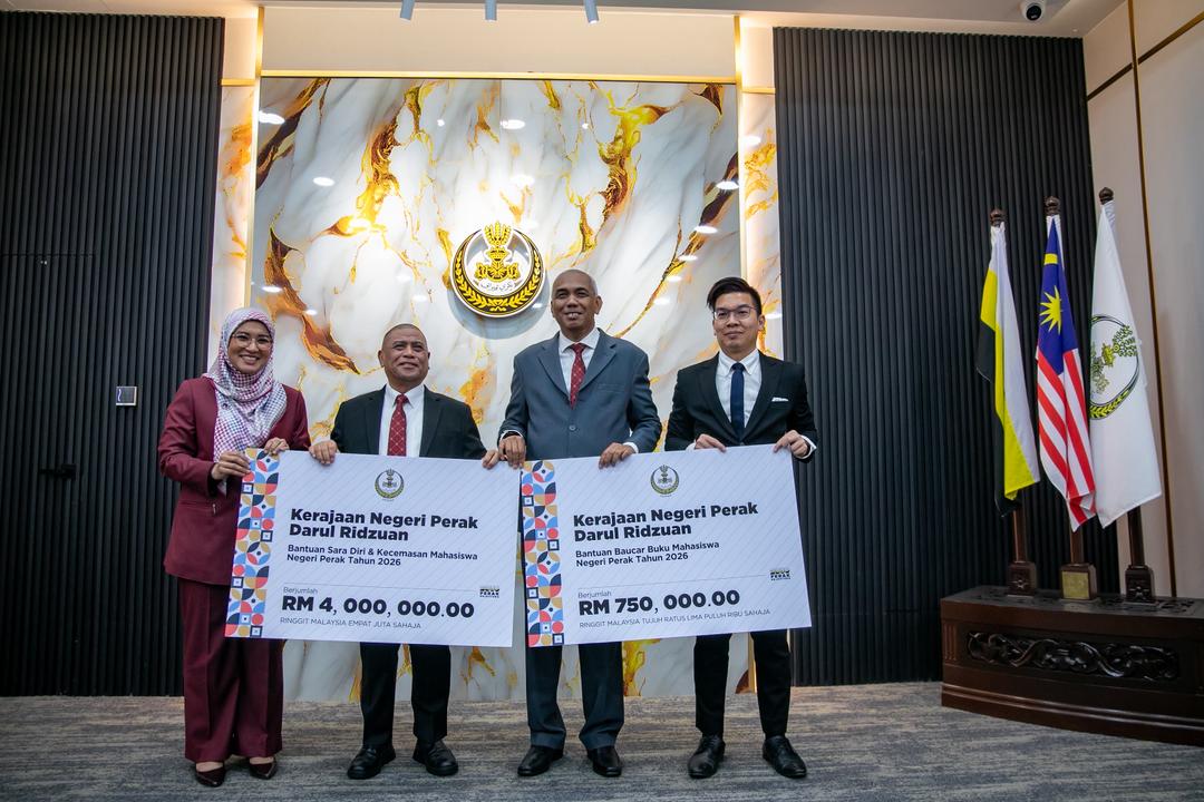 Sedang berlangsung Majlis Pelancaran Bantuan Sara Diri & Kecemasan serta Baucar Buku Mahasiswa Anak Perak bagi tahun 2026.