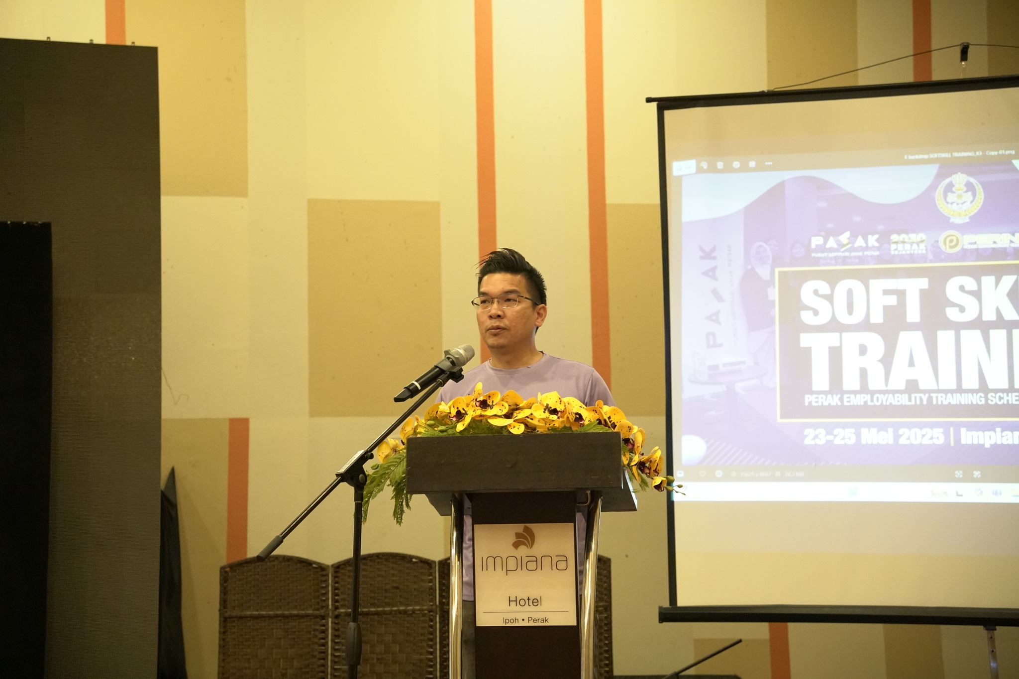 Ipoh, 25hb Mei 2025 – Encik Aldrin Ng selaku Pengarah PASAK telah hadir menyempurnakan majlis penutup program Soft Skills Training kumpulan 1 bagi tahun 2025 yang berlangsung di Impiana Hotel, Ipoh. Program ini telah berlangsung selama 3 hari 2 malam. Latihan ini merupakan salah satu struktur di dalam program PERINTIS.