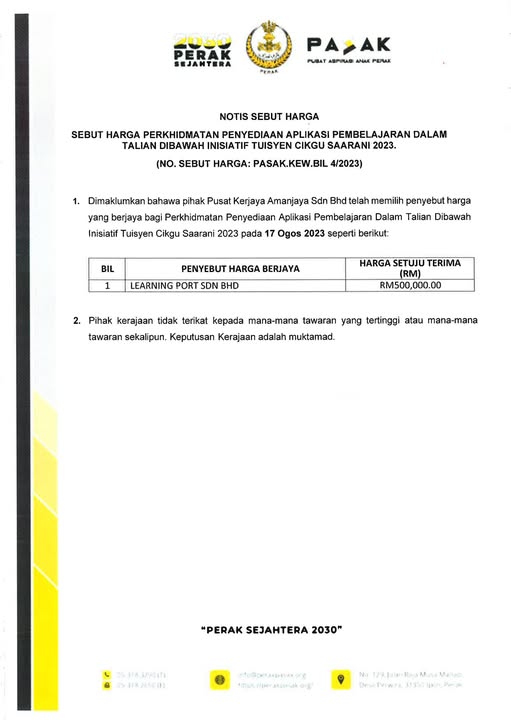KEPUTUSAN NO. SEBUT HARGA: PASAK.KEW.BIL 4/2023