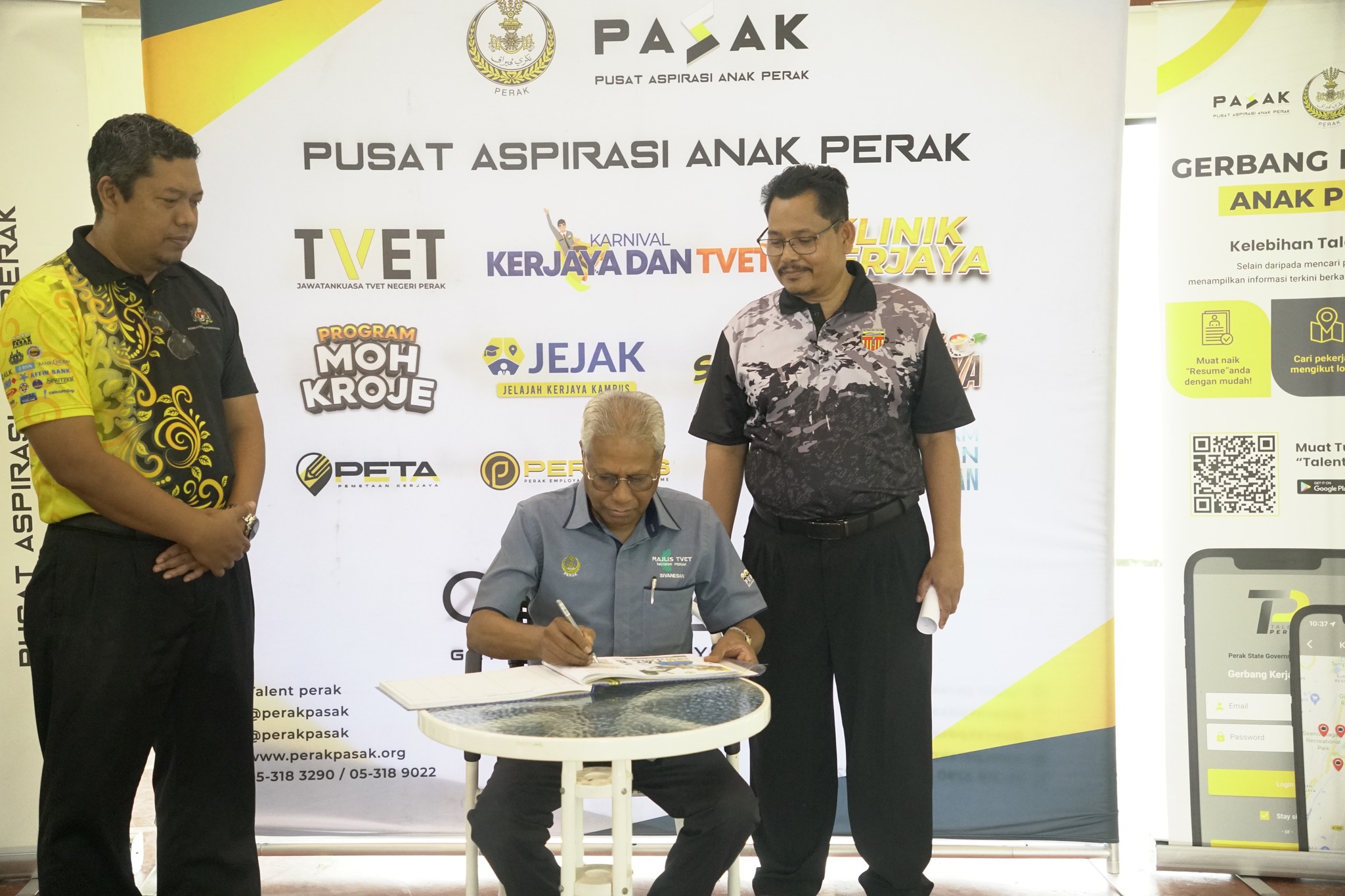 Jelajah ini turut dimeriahkan oleh kehadiran YB En. Sivanesan Achalingam (Pengerusi Jawatankuasa Kesihatan, Sumber Manusia, Integrasi Nasional dan Hal Ehwal Masyarakat India) bersama Encik Raihanulazmi bin Mohamad, Pegawai Pendidikan Daerah Batang Padang; En. Aldrin Ng, Pengarah Pusat Aspirasi Anak Perak; Tuan Haji Mohd Sabry bin Deraman, Pengetua SMK Syeikh Abdul Ghani; Encik Ahmad Fadyil bin Maulud, wakil Persatuan Ibu Bapa dan Guru (PIBG) SMK Syeikh Abdul Ghani; serta guru-guru dan para pelajar yang turut sama melawat reruai pameran dan demonstrasi TVET yang menjadi salah satu tarikan utama sepanjang program ini.