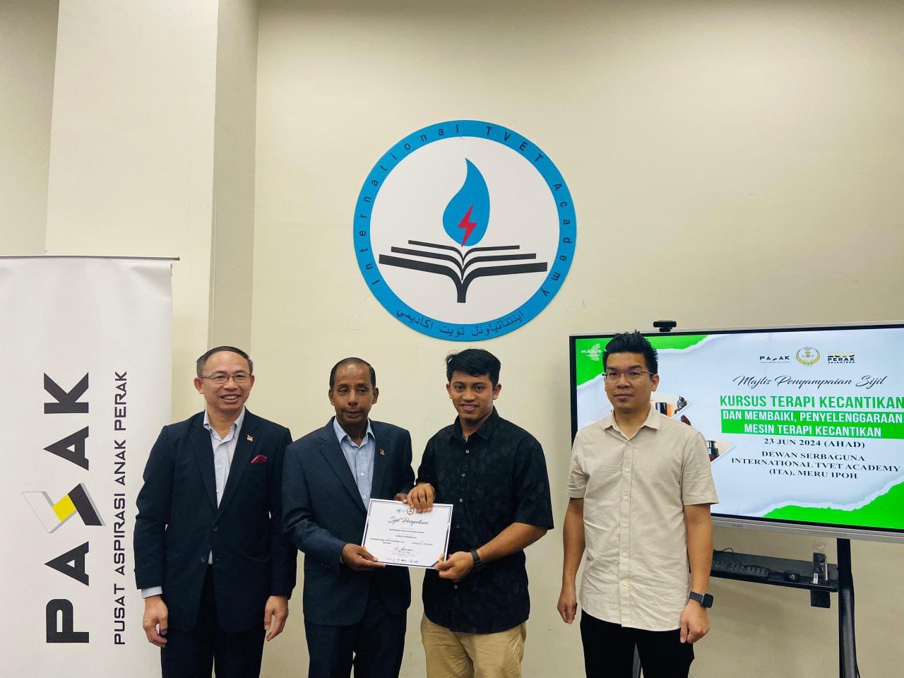 Majlis telah disempurnakan oleh YB Tuan M. Kulasegaran A/L V.Murugeson (Timbalan Menteri Di Jabatan Perdana Menteri Undang-Undang Dan Reformasi Institusi Merangkap Ahli Parlimen Kawasan Ipoh Barat), diiringi oleh Encik Aldrin Ng (Pengarah PASAK), Ts. Dr. Cheong Chee Khing (Pengasas International TVET Academy [ITA]), Tuan Jossua (Pegawai Tugas-Tugas Khas kepada YB Kulasegaran), Puan Lai Sook Sau (Pengasas LeMay Beauty & Academy Enterprise), Encik Ong Kah Hoe (Principal Era Technology College), Encik Chow Wai Leong (Pengarah Operasi Salutica Allied Solutions Sdn. Bhd dan Wakil kepada Dato’ James Lim Technical Advisory Committee Member (TAC)), Encik Choi Jack Son (Principal Keris College) dan wakil-wakil Industri.